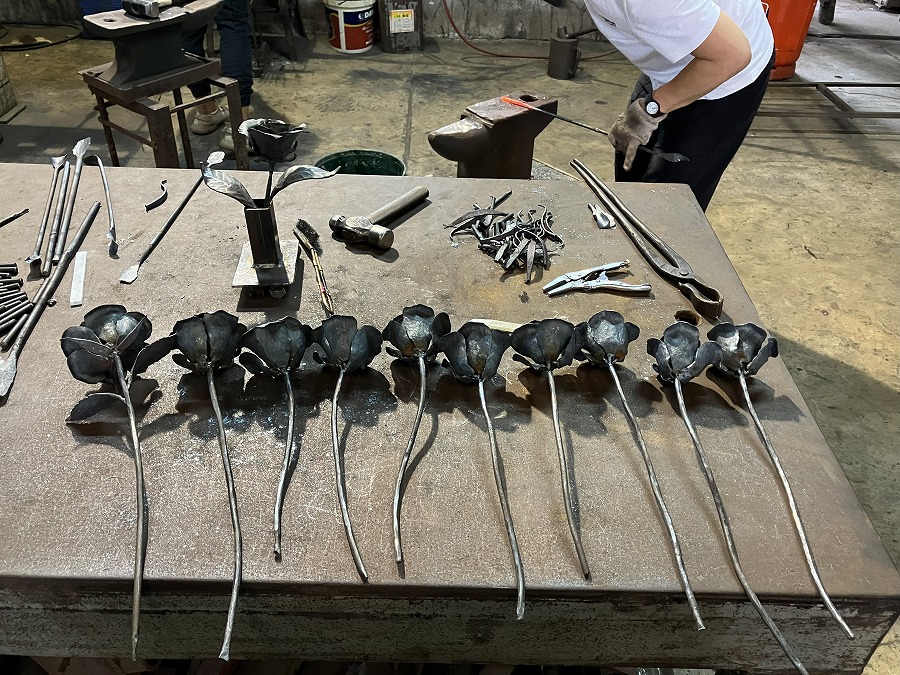 しなやかさや、水の流れのような滑らかな曲線は、職人が鉄の温度を細かく管理し、最適なタイミングで塑性加工(叩いて変形させること)を行うからこそ実現する職人技です。