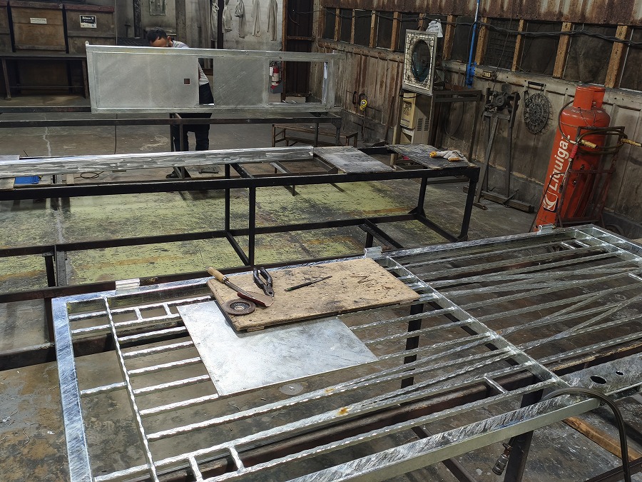 重厚な門扉を支えるヒンジ(蝶番)は、工場の技術力が最も凝縮される部分です。強靭な構造を維持しながら、フレームと一体化するように磨き上げられたその姿は、もはや単なる部品ではなく一つの造形美。滑らかな開閉を実現する精密な設計が、日々の暮らしに安心と品格を添えます。