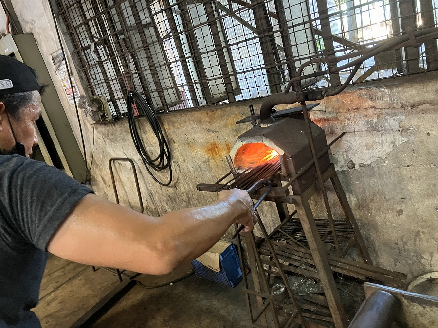 ロートアイアン(Wrought Iron)の「Wrought」とは、「作り上げられた」「鍛えられた」という意味を持ちます。工場で大量生産される鋳物(いもの)とは異なり、一本の真っすぐな鉄の棒を1,000度以上の熱で熱し、職人がハンマーで叩き、曲げることで形を作ります。