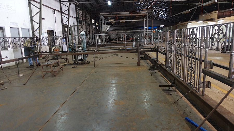 長大なフェンスは、わずかな歪みも許されません。工場内のフラットな検査台で、水平・垂直を徹底的に管理し、全体の連続性と完璧な直線を確認します。