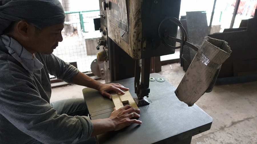 装飾パーツは、 何度も叩いたり手仕事で表情を造り、手に馴染む曲線を作り出します。ここに、製品の『温かみ』が宿ります。
