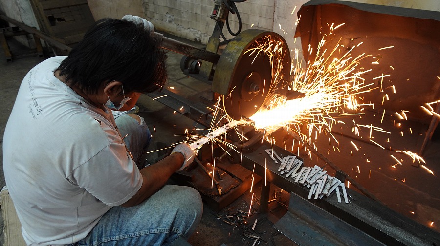 「熱加工による独特の鎚目(ハンマーマーク)は、量産品にはない唯一無二の表情です。塗装後、光を浴びることでこの表情がより一層引き立つのです。カッティングは機械の力をかりて精度を良くします。